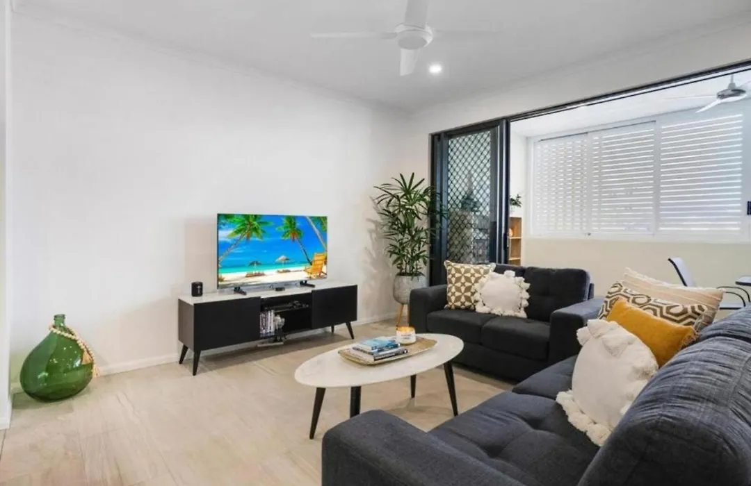 The apartment has a fully equipped kitchen with an oven and a dishwasher. Florence Street at Sheridan Street bus stop is a stone's throw from this apartment.